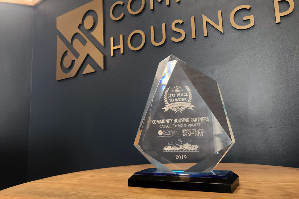 Community Housing Partners (CHP), a Christiansburg-based nonprofit provider of affordable and sustainable housing, recently received recognition as a leading nonprofit employer in Virginia’s New River Valley. The Montgomery County Chamber of Commerce awarded CHP with the Best Place to Work Award in the nonprofit category at its annual Best Places to Work Luncheon in Blacksburg, Virginia, on June 19.