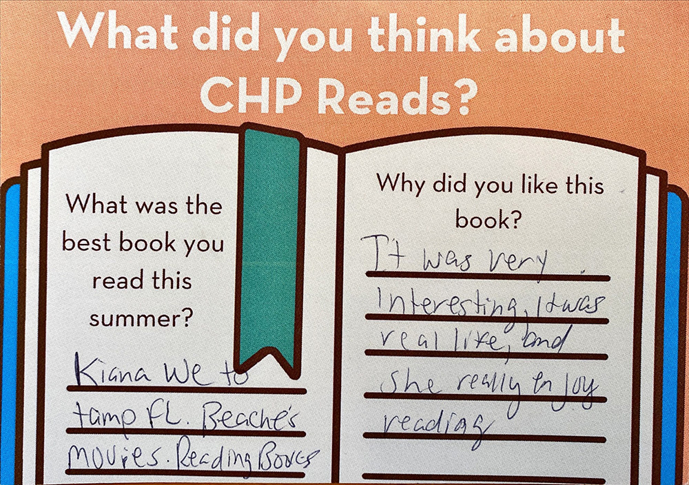 Now in its third year, the CHP Reads! Summer Reading Program launched in 2019 with book fairs, lending libraries, and other reading programs. CHP Resident Services retooled the program for the past two summers to meet new safety standards in response to the pandemic. (Read more about the impact of CHP Reads! in 2020.)